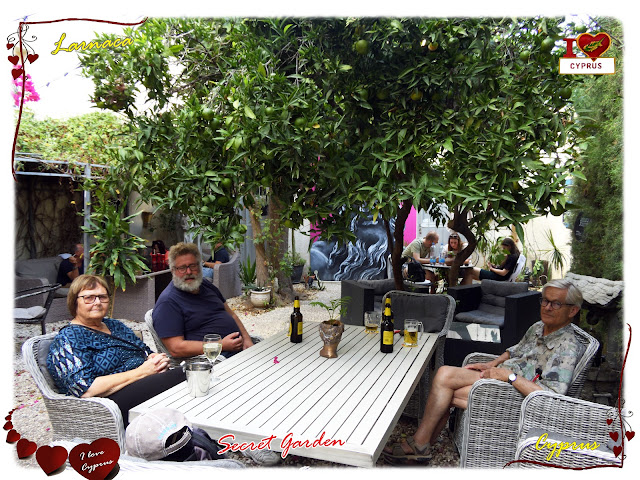 Under vårt opphold i Larnaka i okt.-nov. 2022 var vi tre ganger på besøk i Secret Garden Wine and Coffee Bar og torsdag 20. oktober var Greta og jeg på nytt besøk i bakgården på Secret Garden. I dag hadde vi også med oss Bjørn S. Hansen og Jon Lange. Bjørn har vært fem ganger sammen med oss i Larnaka, og har derfor vært her flere ganger før.