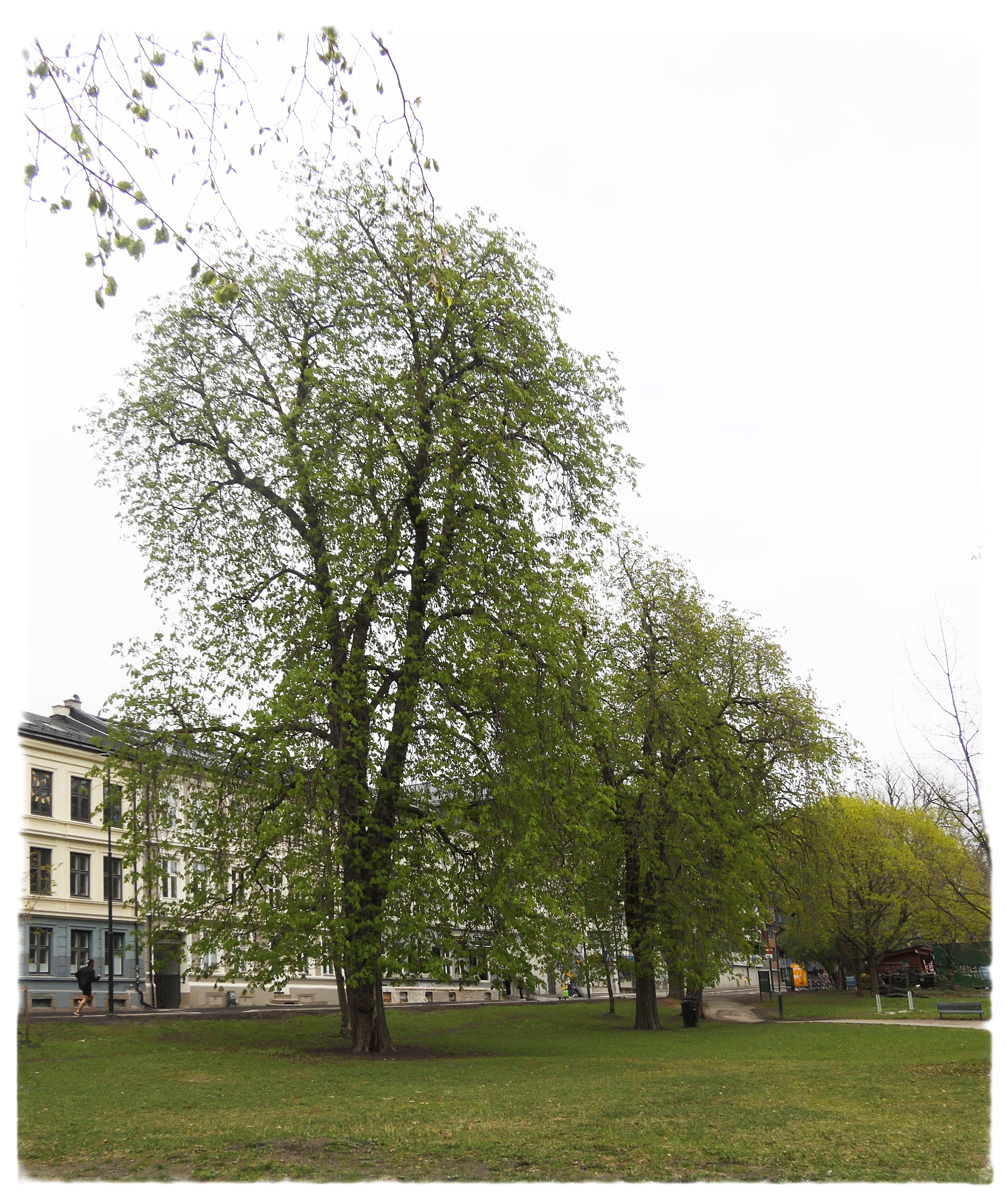 Kirsebærtrærne har nesten blomstra av, men de andre trærne grønnes fint og det er «bærre lækkert» når trærne får slike lysegrønne farger. Intet mindre!