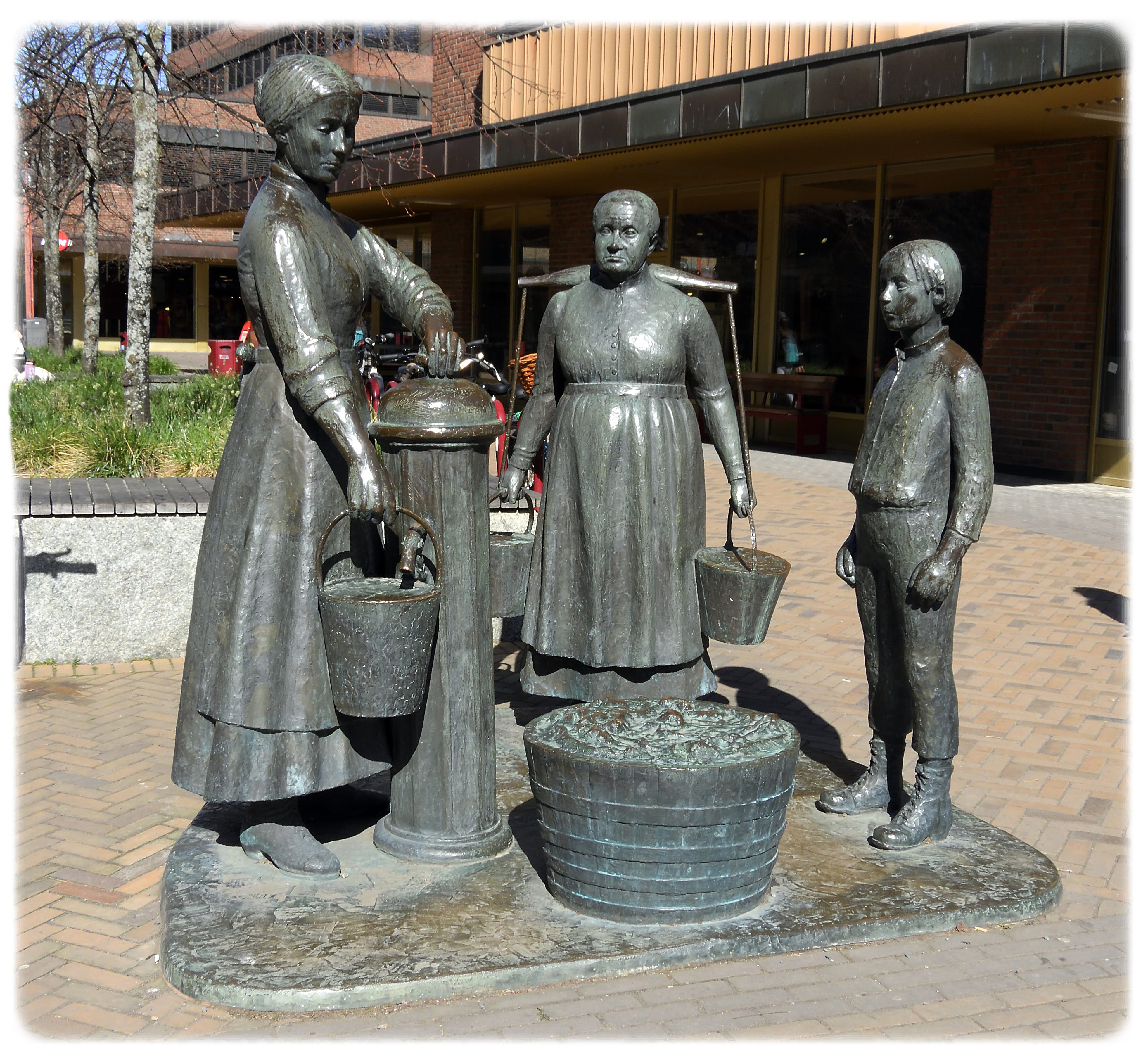 Skulpturgruppen «Konene ved vannposten» av billedhoggeren Odd Hilt. .............................................. |